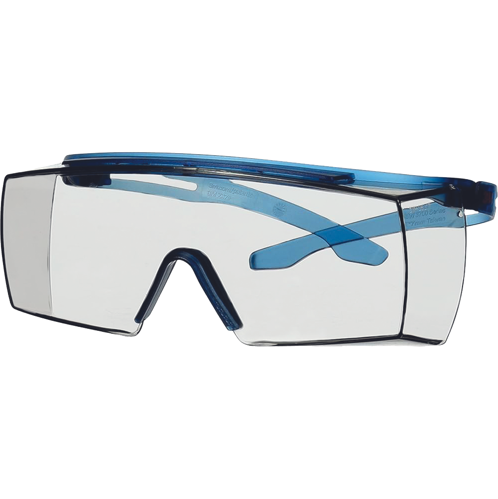 »» látásjavító szemüveg felett hordható védőszemüveg, kék szárral » szemöldökvédelem » polikarbonát lencsék» Scotchgard™ páramentes bevonat » UVA és UVB védelem » állítható racsnis szárak » lencse jelölése :5-1.7 3M 1 FT » EN 166:2001