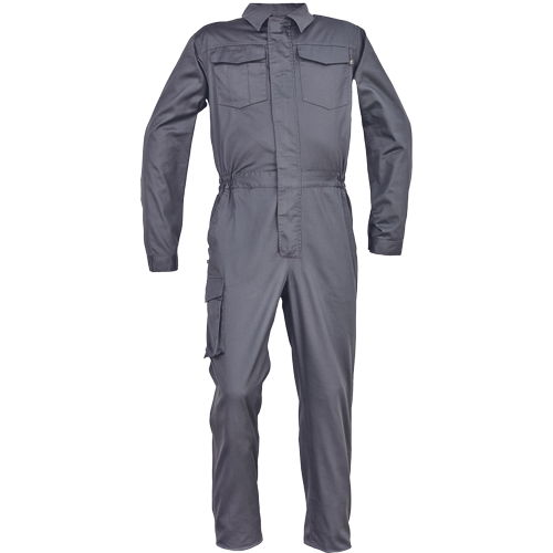 • férfi overall • hajtókával fedett cipzár • 2 zseb elöl, 1 érmezseb • 1 multifunkciós oldalzseb a száron • 2 hátsó zseb • 2 zsebfedős mellzseb • rugalmas betét a derékrészen • leengedhető szárak