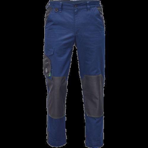 • munkanadrág pamutgazdag anyagból • modern szabással • megerősített térdrész térdvédőtartó zsebbel • 2 zseb elöl • 1 többfunkciós zseb • tépőzáras hátsó zseb • rugalmas derék • D-gyűrű • leengedhető szárak
