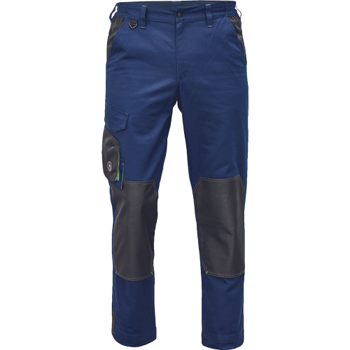 • munkanadrág pamutgazdag anyagból • modern szabással • megerősített térdrész térdvédőtartó zsebbel • 2 zseb elöl • 1 többfunkciós zseb • tépőzáras hátsó zseb • rugalmas derék • D-gyűrű • leengedhető szárak
