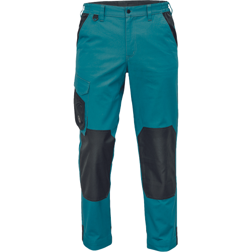 • munkanadrág pamutgazdag anyagból • modern szabással • megerősített térdrész térdvédőtartó zsebbel • 2 zseb elöl • 1 többfunkciós zseb • tépőzáras hátsó zseb • rugalmas derék • D-gyűrű • leengedhető szárak