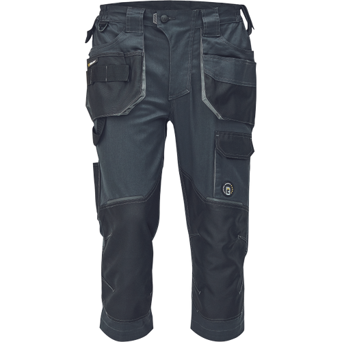 Dinamikus vonalvezetésű, modern szabású férfi 3/4-es nadrág, rugalmas, innovatív TRIFIBETEX® anyagból. Alacsony, gumírozott derékkal készül, láb- és üleprészen tartós, tripla varrásokkal. Praktikus kialakítás: tágas, multifunkcionális első zsebek szerszámtartó pánttal, 2 hátsó zseb Oxford erősítéssel, a combon telefontartó zseb tépőzáras zsebfedővel, külön zsebek vonalzónak, késnek, kalapácsnak, egyedi repülőzseb, D-gyűrű, és szerszámtartó hurok a derékpánton. A munkaruha színeivel harmonizáló fényvisszavető elemekkel egészítettük ki.Anyagösszetétel: 62% pamut, 35% poliészter, 3% elasztán • 260 g/m2