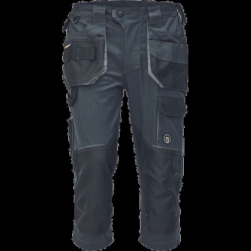 Dinamikus vonalvezetésű, modern szabású férfi 3/4-es nadrág, rugalmas, innovatív TRIFIBETEX® anyagból. Alacsony, gumírozott derékkal készül, láb- és üleprészen tartós, tripla varrásokkal. Praktikus kialakítás: tágas, multifunkcionális első zsebek szerszámtartó pánttal, 2 hátsó zseb Oxford erősítéssel, a combon telefontartó zseb tépőzáras zsebfedővel, külön zsebek vonalzónak, késnek, kalapácsnak, egyedi repülőzseb, D-gyűrű, és szerszámtartó hurok a derékpánton. A munkaruha színeivel harmonizáló fényvisszavető elemekkel egészítettük ki.Anyagösszetétel: 62% pamut, 35% poliészter, 3% elasztán • 260 g/m2