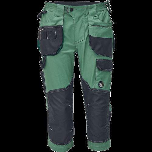 Dinamikus vonalvezetésű, modern szabású férfi 3/4-es nadrág, rugalmas, innovatív TRIFIBETEX® anyagból. Alacsony, gumírozott derékkal készül, láb- és üleprészen tartós, tripla varrásokkal. Praktikus kialakítás: tágas, multifunkcionális első zsebek szerszámtartó pánttal, 2 hátsó zseb Oxford erősítéssel, a combon telefontartó zseb tépőzáras zsebfedővel, külön zsebek vonalzónak, késnek, kalapácsnak, egyedi repülőzseb, D-gyűrű, és szerszámtartó hurok a derékpánton. A munkaruha színeivel harmonizáló fényvisszavető elemekkel egészítettük ki.Anyagösszetétel: 62% pamut, 35% poliészter, 3% elasztán • 260 g/m2