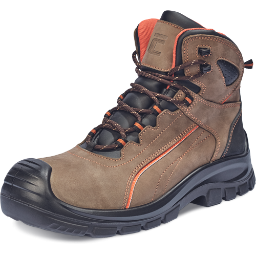 • biztonsági bakancs kompozit lábujjvédővel és fémmentes átszúrás ellen védő köztalppal, kétrétegű PU/PU talppa l• vízlepergető nubuk bőr felsőrész