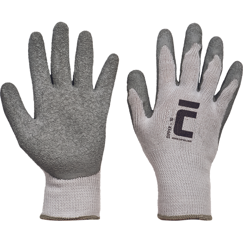 • kötött, varratmentes pamut-poliészter kesztyű • félig természetes latexbe mártva • csúszásgátló tenyér és ujjak • rugalmas, kötött mandzsettáa méretek: női 7, 8 (zöld) | férfi 9, 10, 11 (szürke)