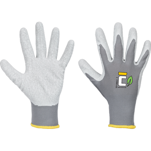 Tartós, környezetbarát, varratmentes munkavédelmi kesztyű újrahasznosított poliészter fonalból készül, amely egész napos kényelmet és tartósságot biztosít. A tenyérrészt szürke, bordázott latex bevonat fedi, amely kiváló fogást és kopásállóságot nyújt nedves és száraz körülmények között egyaránt. Ideális választás nehéz fizikai munkához, környezettudatos megközelítéssel ötvözve.