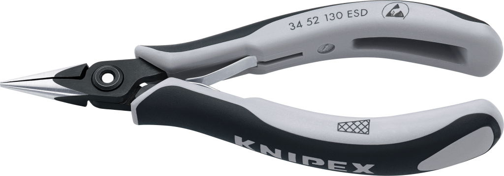 Elektronikai félkerekcsőrű fogó, ESD, precíziós 130 mm, keresztfogazott pofa
