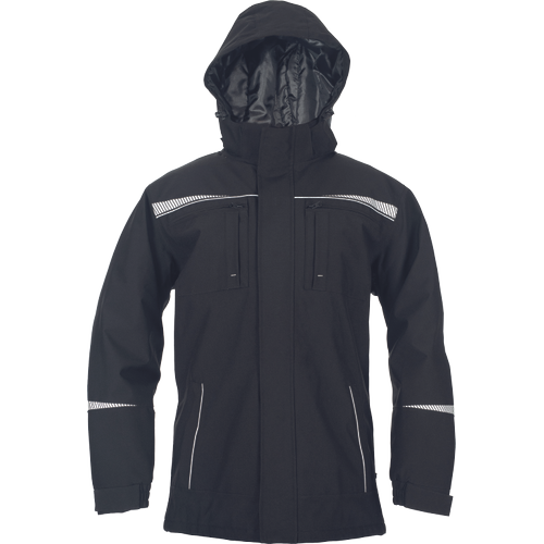 Vízálló téli kabát levehető, bélelt kapucnival. A kabát cipzárral záródik, amelyet kívülről tépőzárral rögzíthető fedés borít. Két cipzáras oldalzsebbel, két mellzsebbel és két belső zsebbel rendelkezik, ujjain rugalmas mandzsettával. Fényvisszaverő részletei és retroreflektív elemei fokozzák a láthatóságot. A termék megfelel az EN ISO 13688 szabványnak.