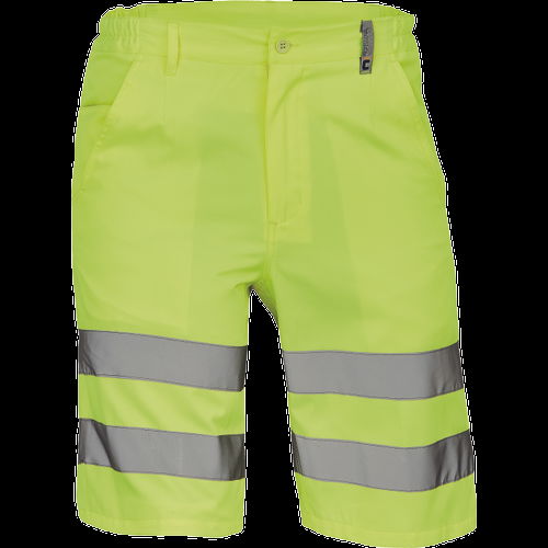 • férfi Hi-Vis rövidnadrág 7 cm széles fényvisszavető csíkokkal • 2 oldalsó zseb + 1 érmezseb • 2 hátsó zseb • rugalmas oldalsó betétek a derékon