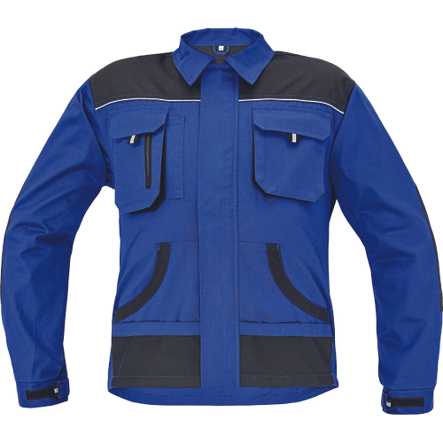• férfi munkakabát • cipzáras kivitelben, tépőzáras hajtókával • 2 tépőzáras mellzseb • 2 multifunkcionális oldalzseb • OXFORD poliészter erősítés könyökrészeken és a vállakon • 100% pamut, 235g/m2