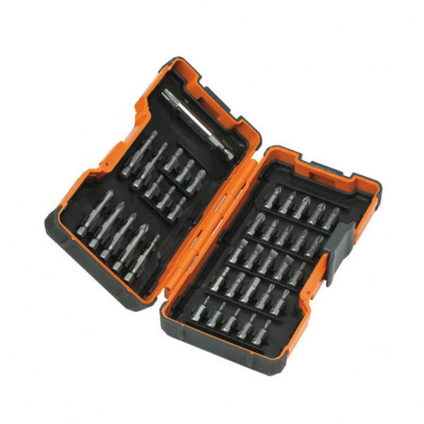25 mm hosszú:PH1 / PH2 (2pcs)/ PH3 / PZ1 (2pcs)/ PZ2 (2pcs)/ PZ3 (2pcs)/ TX6/ TX7 / TX 8/ TX9/ TX10 (2pcs)/ TX15 (2pcs)/ TX20 (2pcs)/ TX25 (2pcs)/ TX30/ TX40/ Hex 3/ Hex 4/ Hex 5/ Hex 6/ SL 0.6 x 4.5/ SL 0.8 x 5.5/ SL 1.0 x 5.5/ SL 1.2 x 6.5
