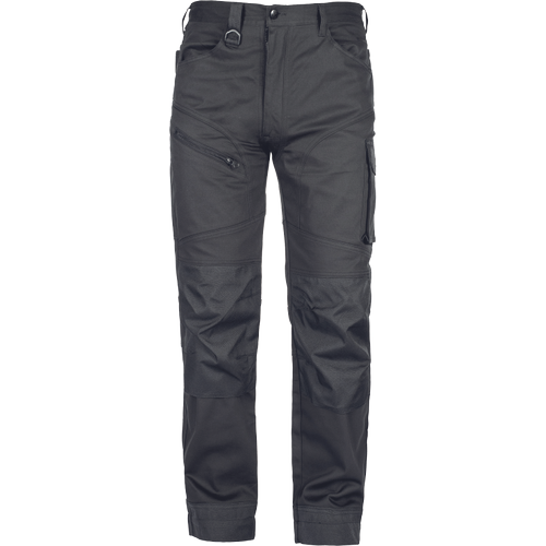 • minőségi férfi munkanadrág elasztikus anyagból • 2 oldalzseb • 2 hátsó zseb tépőzárral • 2 combzseb • megerősített térdzsebek térdvédő betét behelyezési lehetőséggel • hosszabbítható nadrágszárak akár 5 cm-rel • díszvarrás