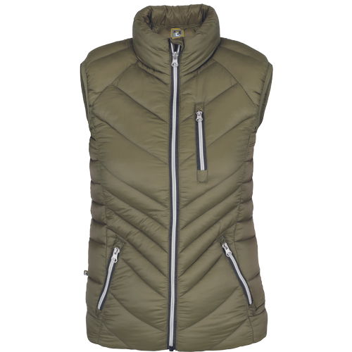 • női, bélelt szabadidő mellény • cipzáras záródással • két cipzáras oldalzseb • egy cipzáras mellzseb