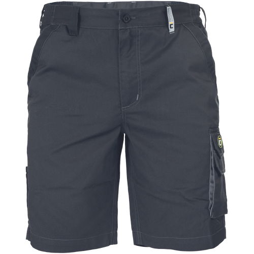 • férfi munkás rövidnadrág rugalmas derékpánttal • 2 oldalzseb • 2 combzseb • 2 hátsó zseb tépőzárral • fényvisszavető részletek
