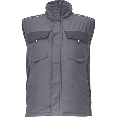 • férfi téli mellény • cipzárral záródó kialakítás tépőzáras hajtókával • 2 oldalzseb, 2 mellzseb • 1 belső mobiltelefon zseb • fényvisszavető szegélyek