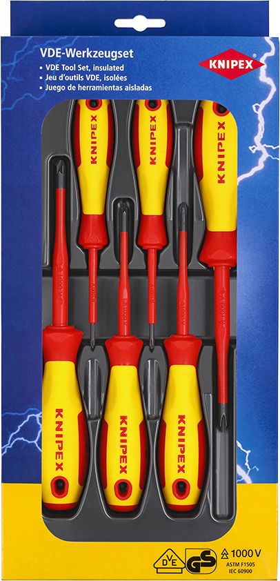 Szigetelt csavarhúzó készlet, vékonyított szár 6 részes PH0+1+2-PZ0+1+2