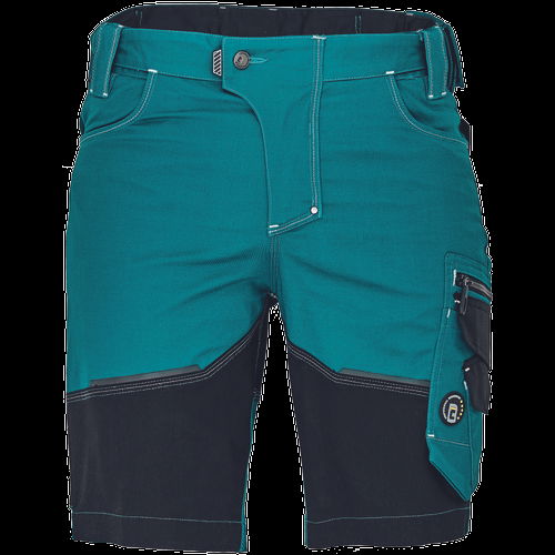 • férfi rövidnadrág innovatív, rugalmas Trifibetex® anyagból • 2 ékzseb • hátul 2 tépőzáras foltzseb • bal oldalon nagy multifunkciós zseb • jobb oldalon multifunkciós zseb vonalzónak • kés- és ceruzatartó • fém "D" gyűrű • rugalmas derék • fényvisszavető részletek • dekoratív tripla varrás kontrasztos színnel • kalapácstartó