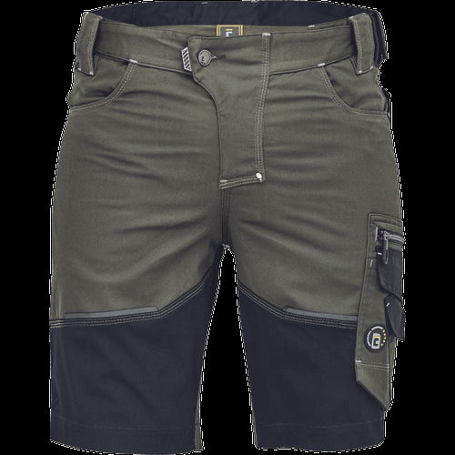 • férfi rövidnadrág innovatív, rugalmas Trifibetex® anyagból • 2 ékzseb • hátul 2 tépőzáras foltzseb • bal oldalon nagy multifunkciós zseb • jobb oldalon multifunkciós zseb vonalzónak • kés- és ceruzatartó • fém "D" gyűrű • rugalmas derék • fényvisszavető részletek • dekoratív tripla varrás kontrasztos színnel • kalapácstartó