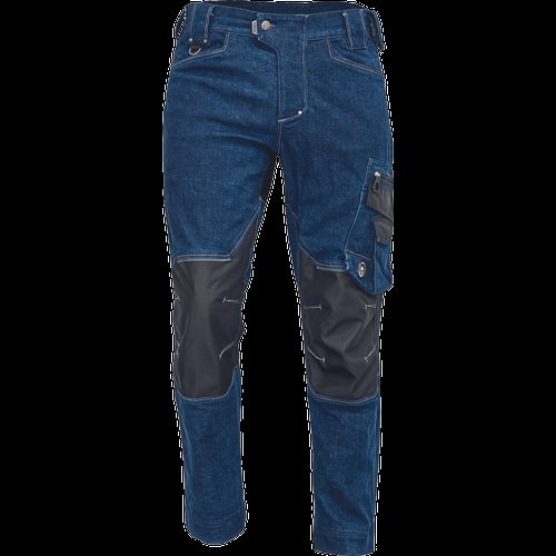 • férfi munkanadrág farmer, rugalmas Trifibetex® és TrifibetexPRO® kombinációjából CORDURA® betétekkel • elöl 2 ékzseb • hátul 2 tépőzáras foltzseb • bal oldalon nagy multifunkciós zseb • jobb oldalon multifunkciós zseb vonalzónak • kés- és ceruzatartó • kalapácstartó • fém "D" gyűrű • rugalmas derék • leengedhető szárak • fényvisszavető részletek • dekoratív tripla varrás kontrasztos színnel