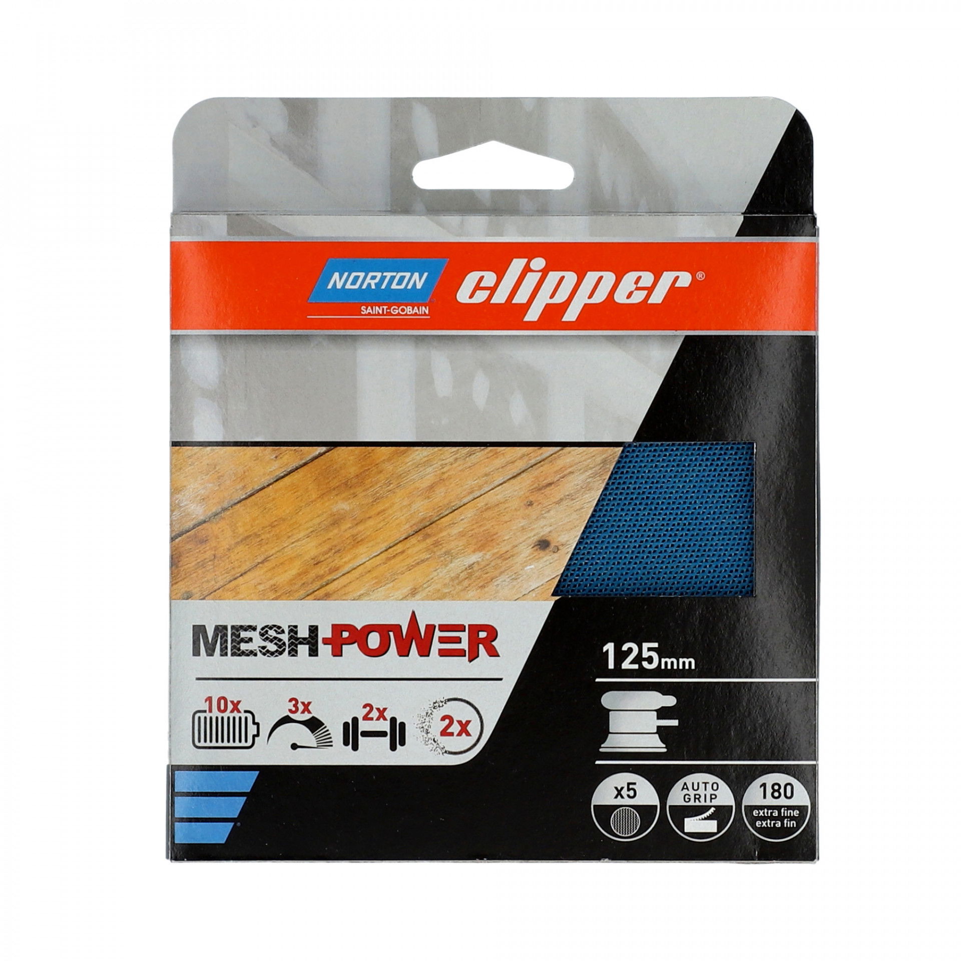 Norton Clipper MeshPower Ceramic tépőzáras csiszolóháló Ø125 mm P180, 5 db/csomag