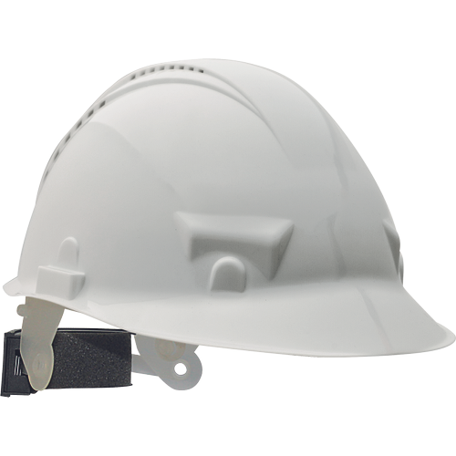 » ellenálló HDPE sisak szellőző kivitelben 6 pontos, műanyag hevederrel és automatikusan mérethez igazodó fejkosárral (53-62 cm) » hőmérséklet: -20 °C- tól 50 °C-ig » élettartam: 5 év » tömeg: 330 g » szabvány: EN 397