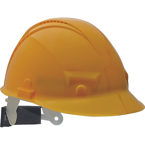 » ellenálló HDPE sisak szellőző kivitelben 6 pontos, műanyag hevederrel és automatikusan mérethez igazodó fejkosárral (53-62 cm) » hőmérséklet: -20 °C- tól 50 °C-ig » élettartam: 5 év » tömeg: 330 g » szabvány: EN 397