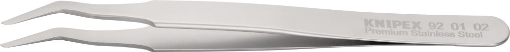 Precíziós szerelő csipesz, SMD technikához, INOX 120 mm, 1,5mm 35°-os hajlított, SM107.SA.1