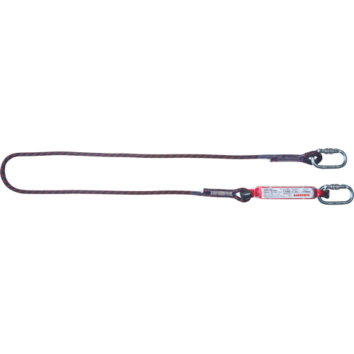 »Energiaelnyelő 1,8 m hosszú PA fonott kötéllel (O 10,5 mm), egy-egy ovális karabinerrel az energiaelnyelőn és a kötélen. Megfelel az EN 355 sz. szabványnak (CE 0082).