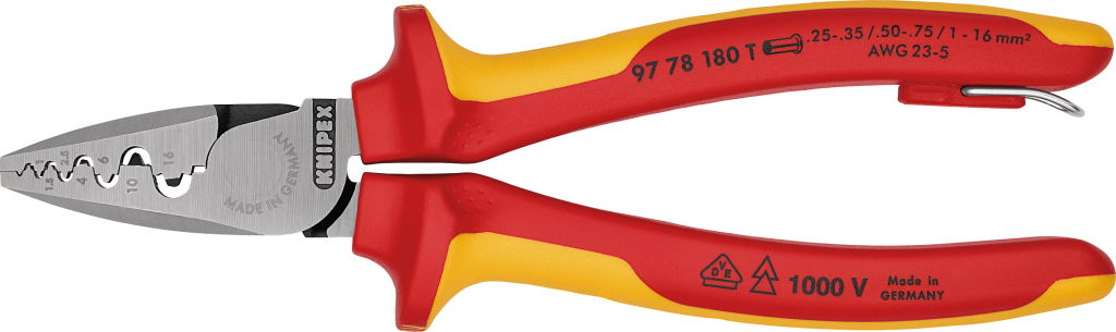 Szigetelt krimpelő fogó, kétkomponensű nyél 0,25-16,0 AWG23-5, 1000V, érvéghüvelyhez leesés ellen biztosítható
