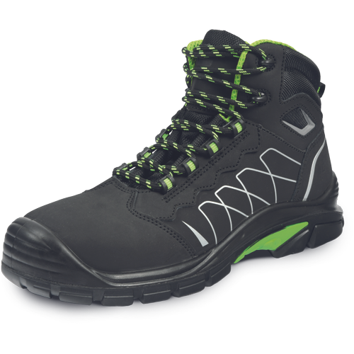 • biztonsági bakancs elősorban kültéri használatra • a fényvisszavető betétek a fokozott láthatóságért • antisztatikus PU/gumi járótalppal rendelkezik, amely kopásálló, üzemanyagálló • a felsőrész lélegző nubuk bőr vízlepergető impregnálással • a kényelmet a speciális belső talpbetétek fokozzák gélbetétekkel a sarok területén • fémmentes kivitel, kompozit lábujjvédővel és átszúrás ellen védő többrétegű textil köztalppal • második pár cipőfűző minden dobozban